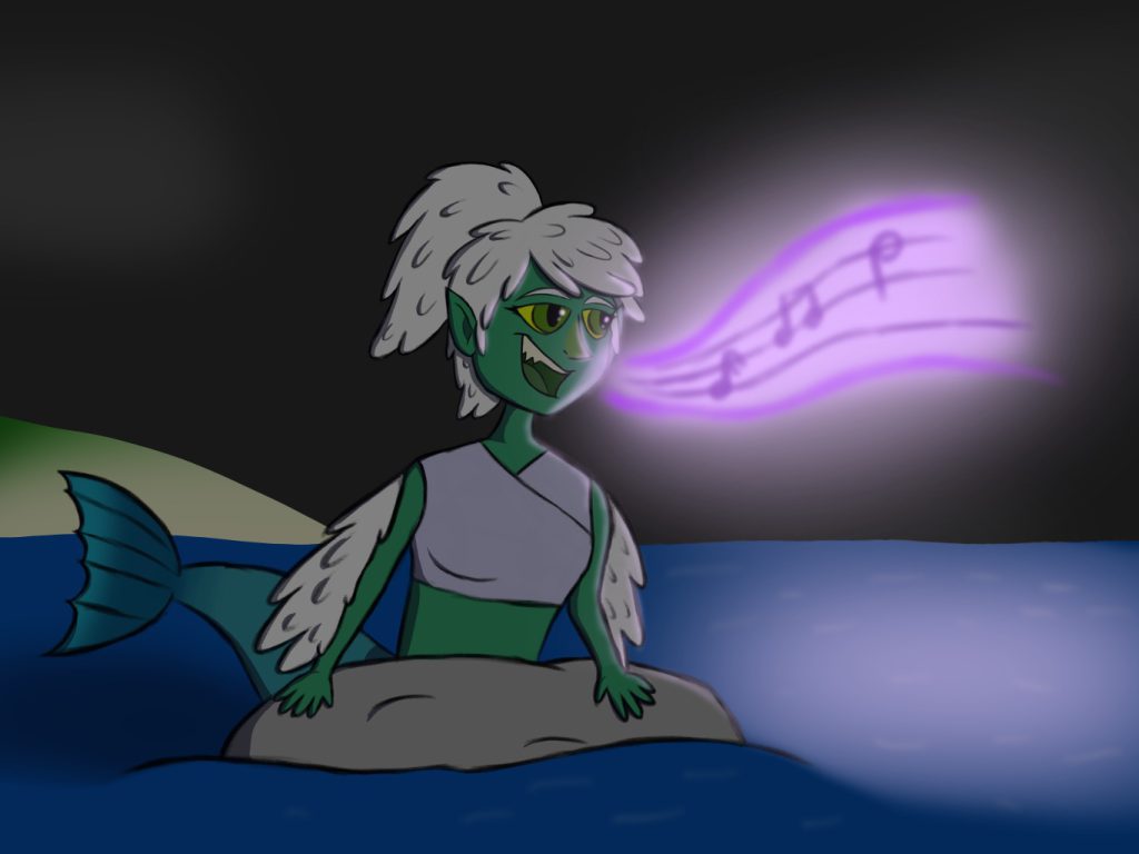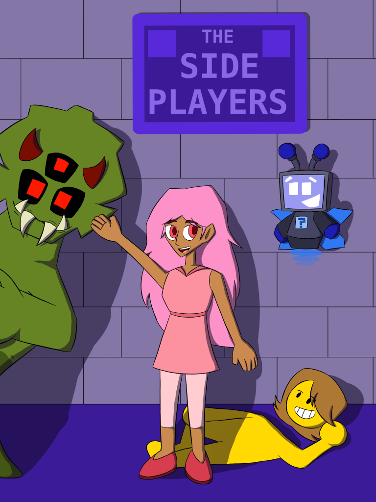 Turnaround of Earth from Earth and the Comet. Made in SketchbookA background from Earth and the Comet. Made in Photoshop.A visual of a lightbulb. Made in Illustrate.A poster for the interactive comic project, The Side Players. Made in Sketchbook.Characters from The Side Players. Made in Sketchbook.A drawing of a siren singing her magical song. Made in Sketchbook.